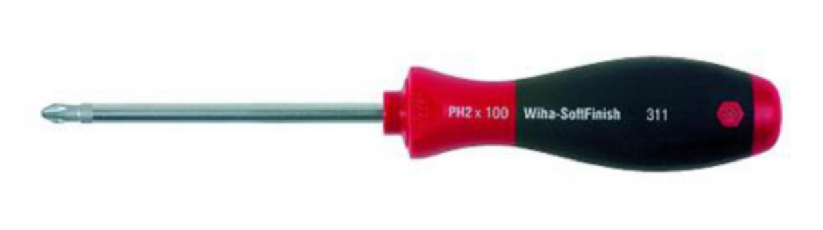 SoftFinish Phillips skrutrekker med rundt blad. Høy kvalitet krom-vanadium-molybden stål, gjennom herdet, forkrommet. Wiha ChromTop® finish på spissen for en perfekt passform hver gang. Ergonomisk, multi-komponent håndtak med antigli.