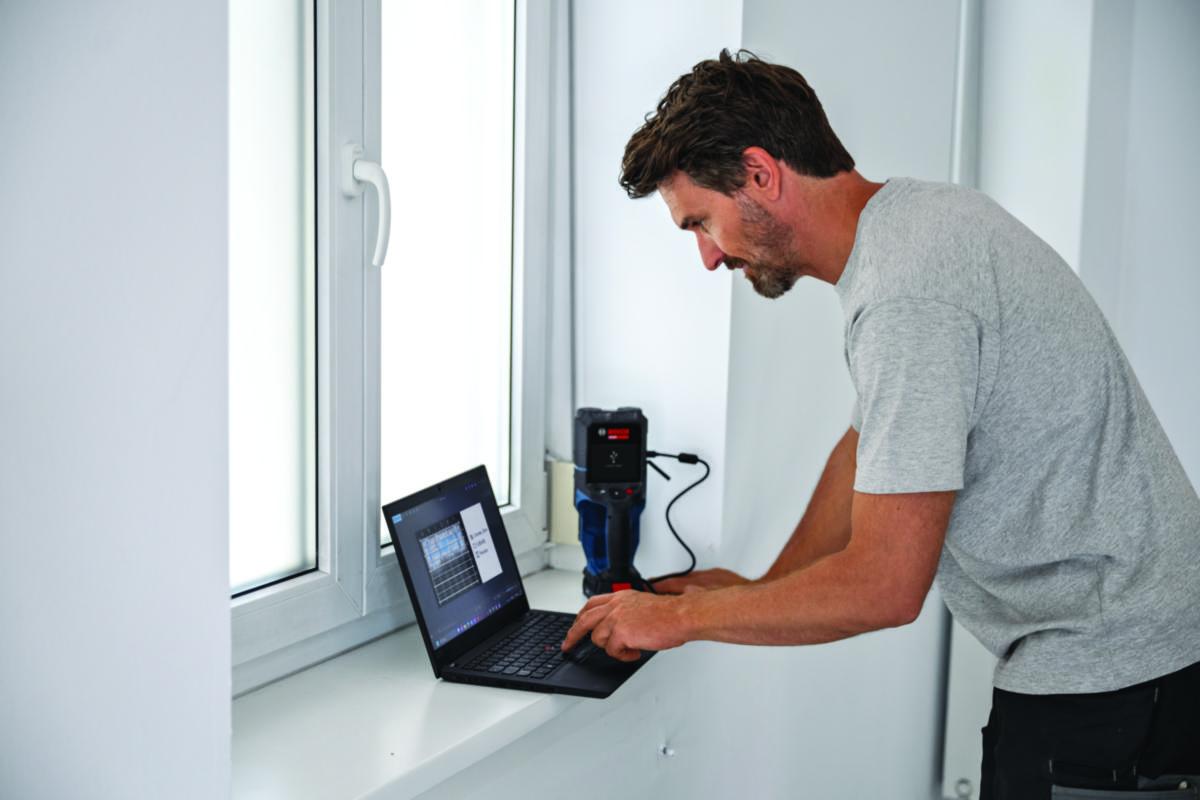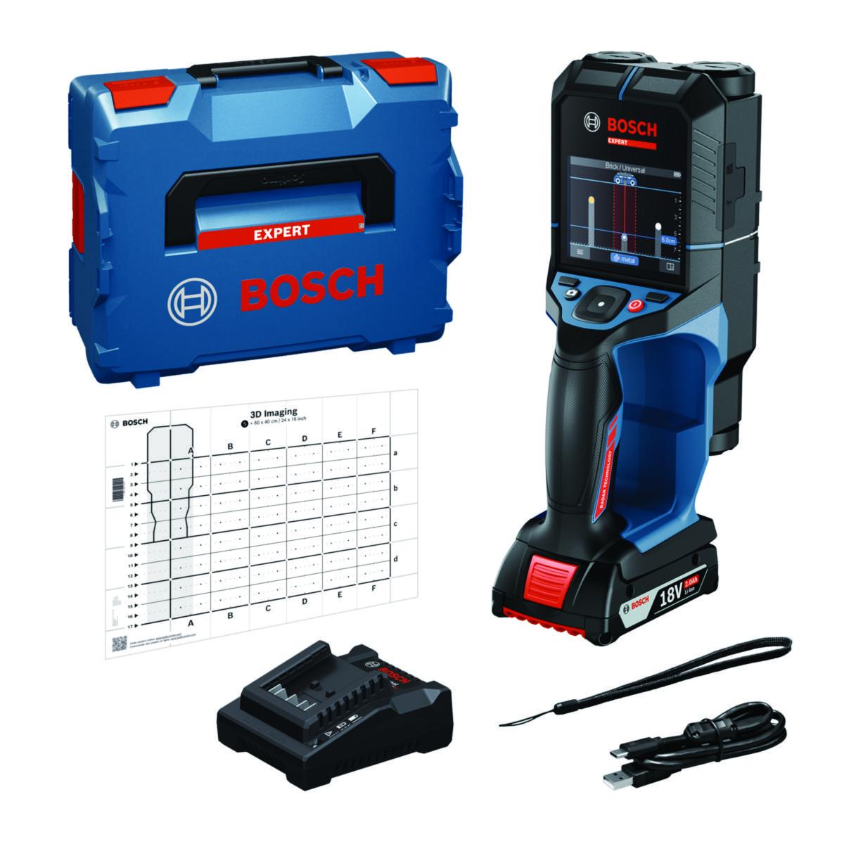 "EXPERT stendersøker med overlegen deteksjonsytelse, Enestående deteksjonskvalitet: Oppdager skjulte objekter ned til 200 mm dybde med AI-teknologi, Bosch-radarteknologi: Sikrer nøyaktig deteksjon som forhindrer kostbare skader og sikkerhetsrisikoer.
