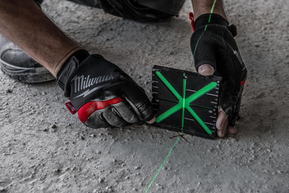 MILWAUKEE® lasermålplate med høy synlighet gir rask og synlig justering med en bred magnetisk base for gulv og jernholdige overflater. Reflekterende overflate med høy kontrast for bruk med grønne lasere. X-design gir responsiv sentrerings-tilbakemelding som leder linjen til senter, noe som gjør justeringsprosessen raskere.