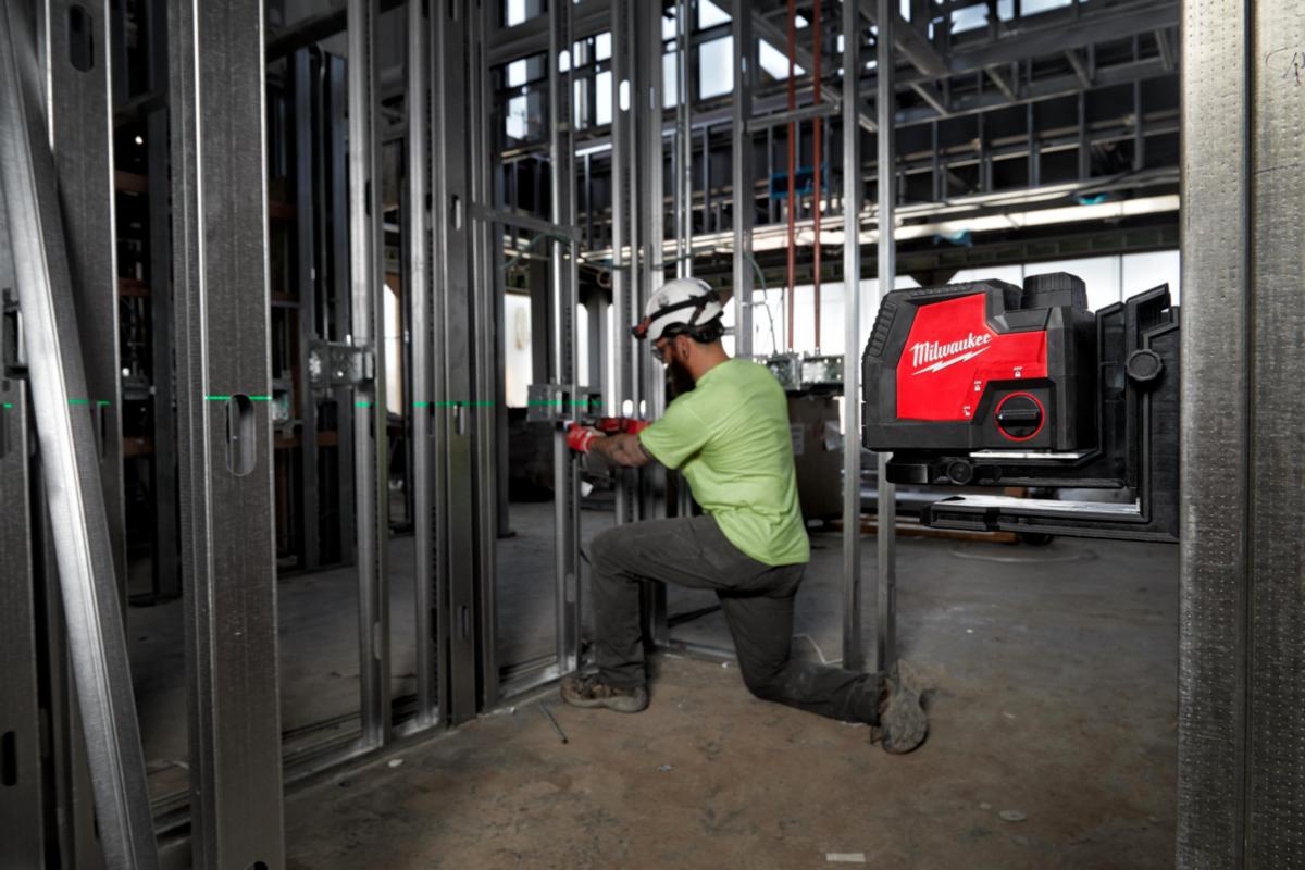 USB oppladbar krysslaser med loddpunkter med kompromissløs synlighet og høyintensiv grønn laser. Opptil 4 ganger lysstyrken over røde lasere med et arbeidsområde på 30m og 50m med detektor. REDLITHIUM ™ USB-ladet batteri med strømindiaktor gir lang driftstid og erstatter opptil 6000 alkaliske batterier. IP 54 gir høy holdbarhet. 360 ° rotasjon med makro- og mikrojusterbarhet. 1/4 "stativgjenger. 4 ° selvnivelleringsområde. Vekt 0,9 kg. Leveres med 3,0 Ah USB-batteri, USB-kabel og trackclip i en koffert.