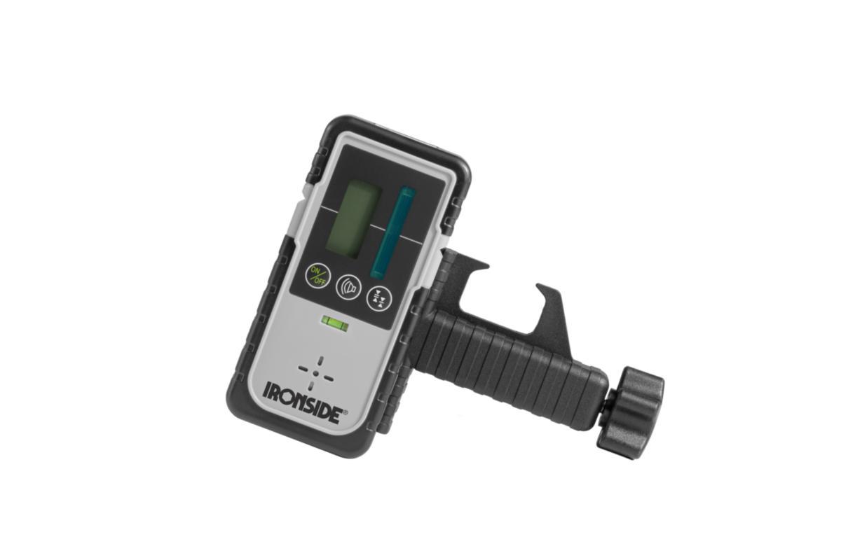 Del av Rotasjonslasersett Ironside art nr 562571. For bruk med pulsaktiverte laserverktøy for utvidet rekkevidde. Synlige og hørbare indikatorskilt. Automatisk avstenging. Lavspenningsalarm. Høy nøyaktighet ± 1,5 mm. Lav nøyaktighet ± 2,5 mm.