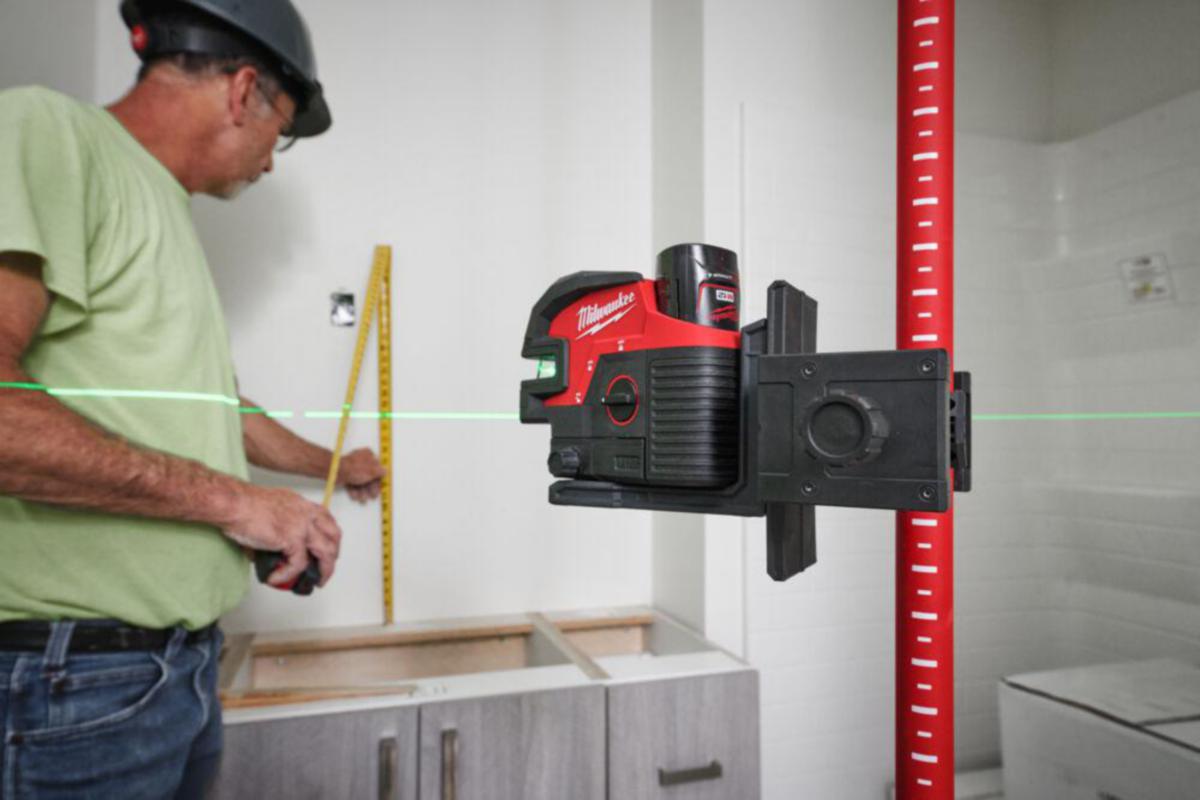 MILWAUKEE® teleskop-laserstang forlengbar opp til 3,6m, ideel til krysslasere. Det fjederbelastede hodet gjør det enkelt å sette opp. Den medfølgende "quick release"-klemmen åpner til 6,3 cm og kan fastgjøres til runde og firkantede materialer. Alle MILWAUKEE® lasere kan monteres beslaget. Avkryssningsmerkerne hjelper med å identifiseree den riktige plassering av laseren.