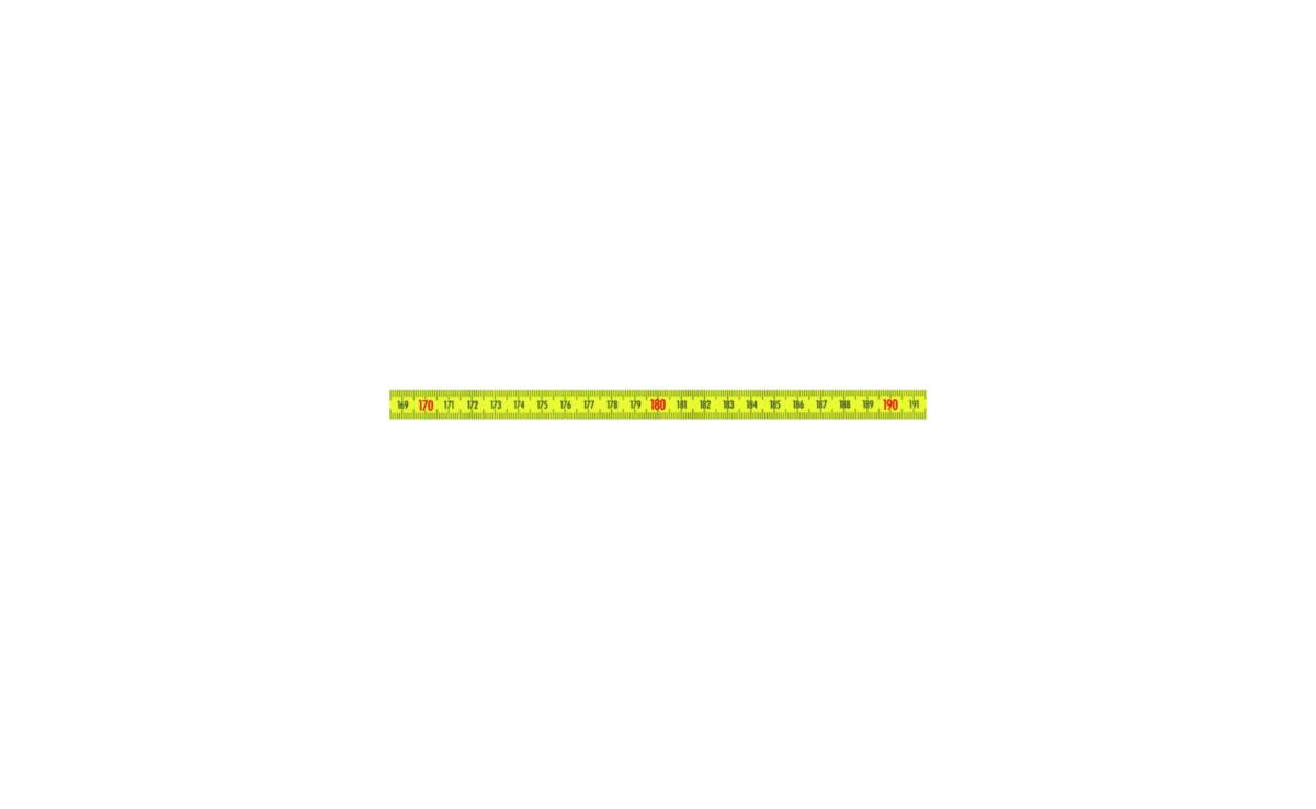 Målebåndet er selvklebende ved hjelp av dobbeltsidig teip. Gradert fra venstre til høyre med kontinuerlig mm og cm gradering.