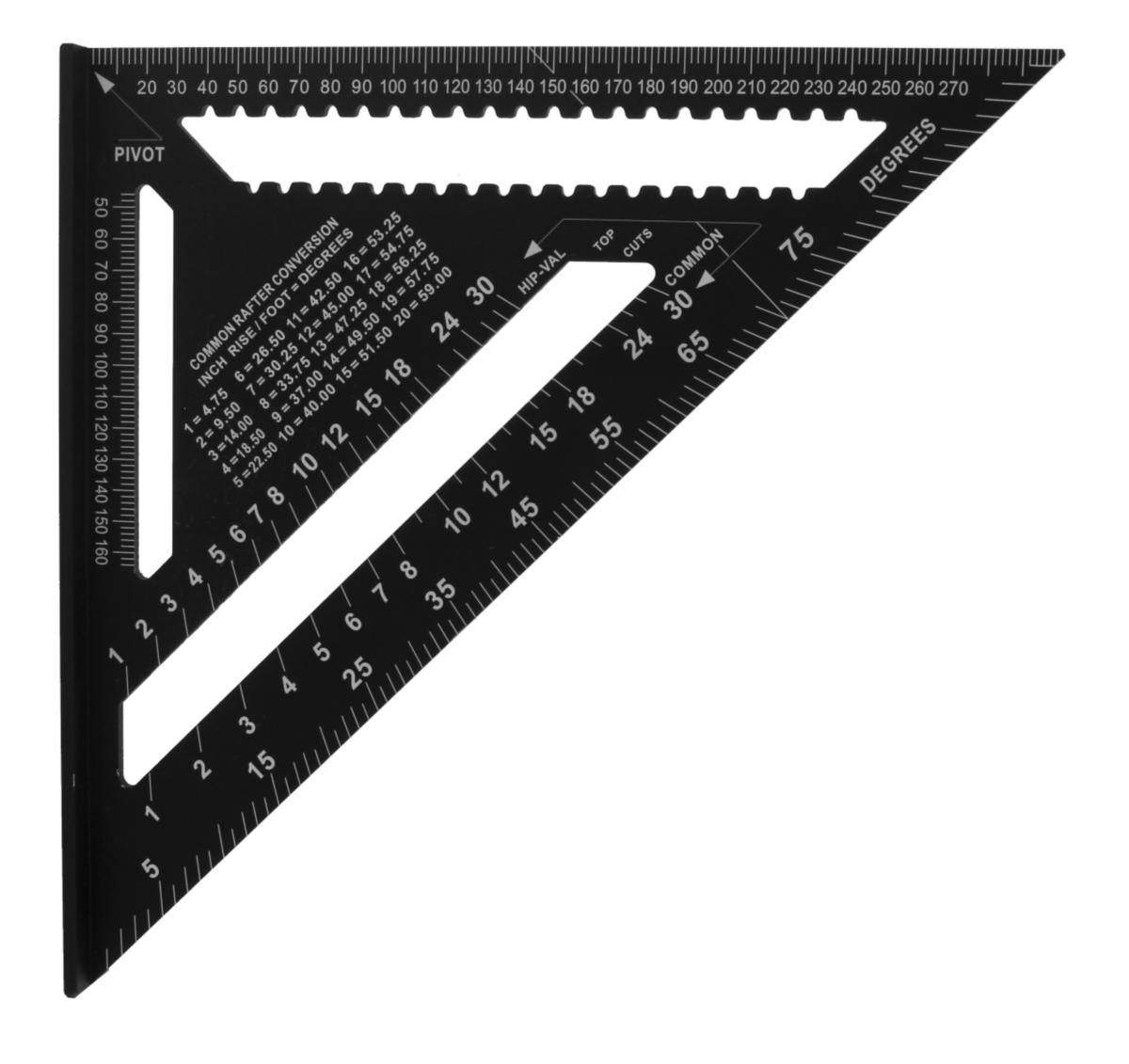 Tecos tømmervinkel (sort) – produsert i aluminium med mm-skala (300 mm). Mange praktiske funksjoner som tilpassing av vinkler og vinkelmåling m.m. Til praktisk bruk ved saging med stikksag og sirkelsag.