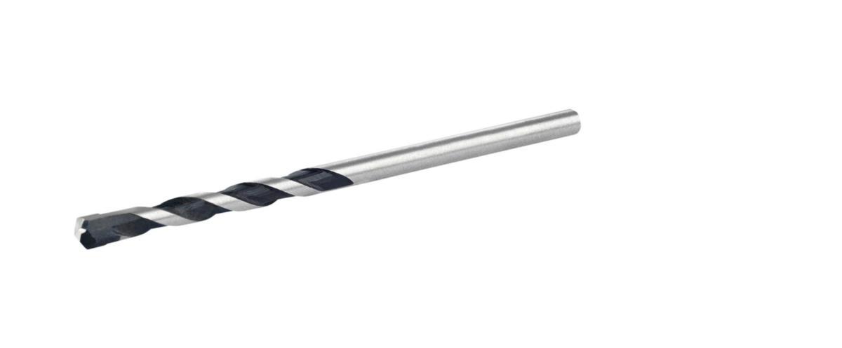 Multiconstruction. HM-bestykket bor med spiral. Høytemperaturloddete skjær uten spenninger. 118° borspiss. Hardmetallskjær med midtsentrering og multisliping. Borer i keramikk og fliser opptil hardhet 8, eternitt, plast, aluminium, konstruksjonsstål, alle lette byggematerialer, tre, murverk, teglstein og betong B 35.
