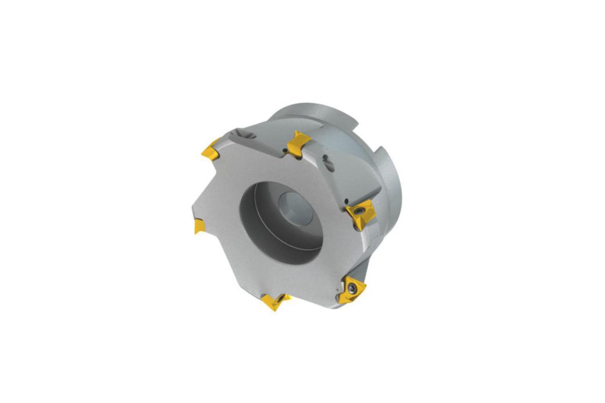 Skulder planfres med dobbel negativ geometri som benytter TNGX 1606.. dobbelsidig skjær, skjærdiameter med 90° tilnærmingsvinkel og konisk skaft i følge DIN 8030-A, innvendig kjøling til planfresing, ikke dyp skulder fresing, ikke dyp skulder fresing og skruefresing i forhåndsmaskinerte hull.