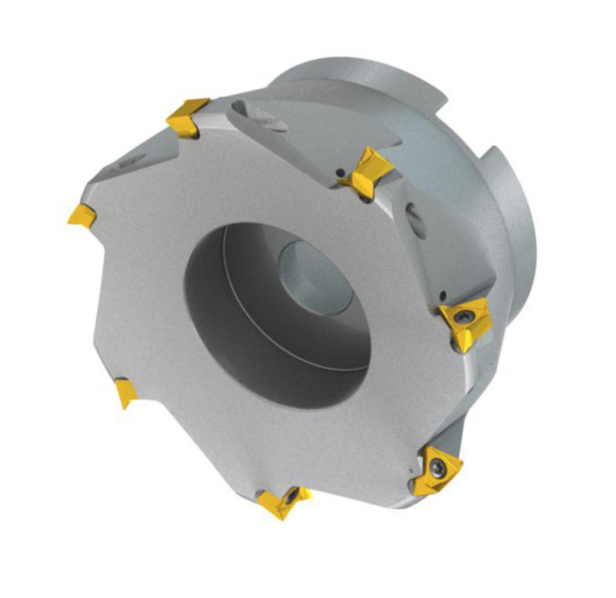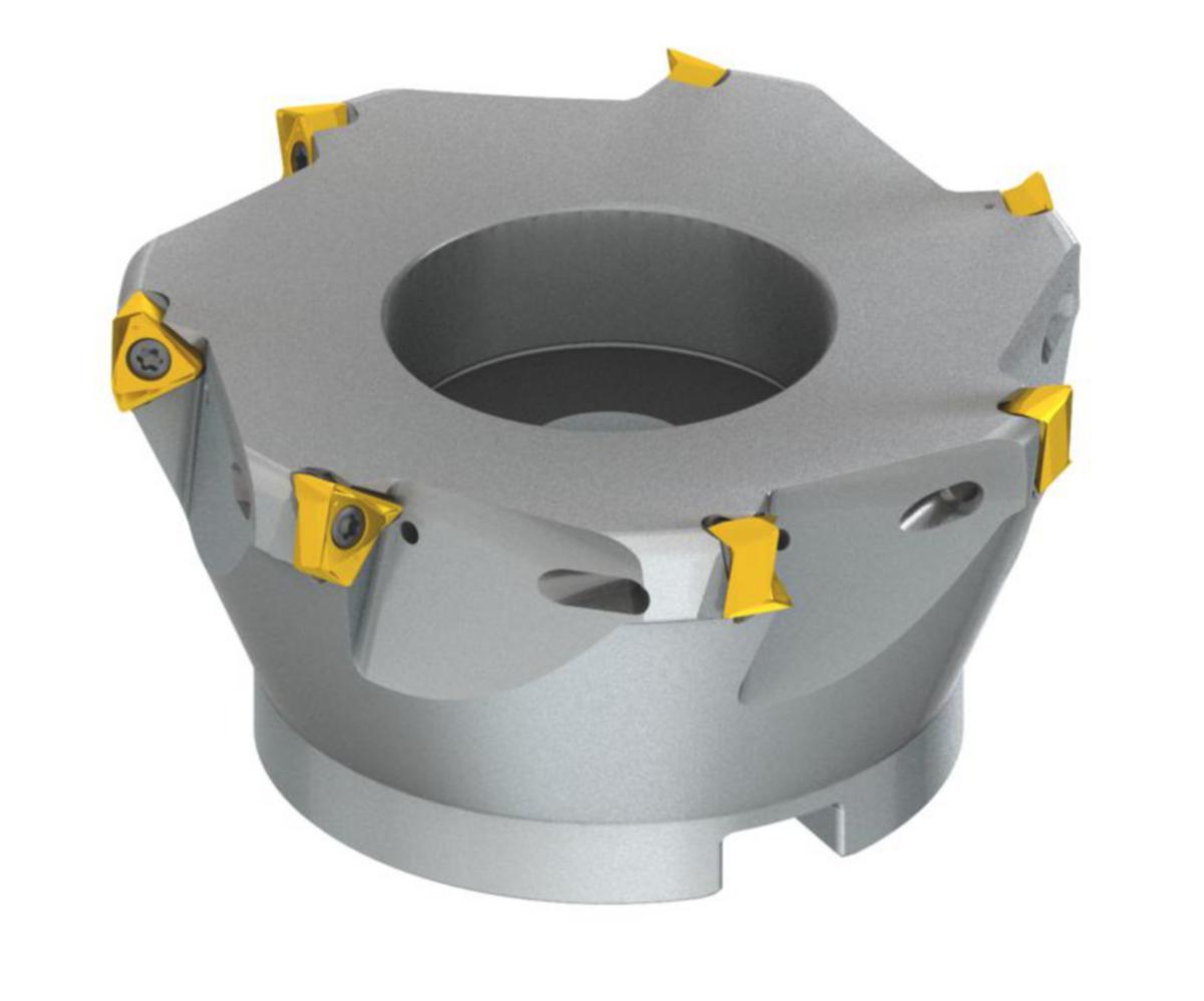 Skulder planfres med dobbel negativ geometri som benytter TNGX 1606.. dobbelsidig skjær, skjærdiameter med 90° tilnærmingsvinkel og konisk skaft i følge DIN 8030-A, innvendig kjøling til planfresing, ikke dyp skulder fresing, ikke dyp skulder fresing og skruefresing i forhåndsmaskinerte hull.
