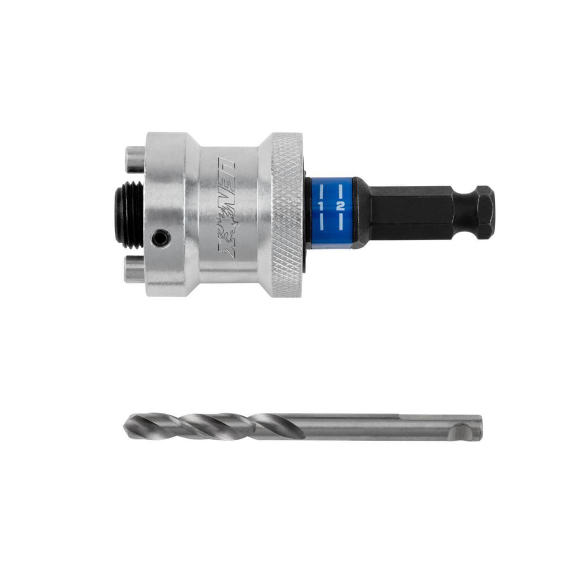 LENOX SNAP-BACK™ Hullsagholder. Raskt og enkelt bytt hullsagholder. Verktøyfritt borskifte, ingen unbrakonøkkel kreves for å bytte LENOX pilotbor. ANTI-JAM krage, forsterket krage driver hullsagen uten å binde seg eller løsne. Universal hullsagkompatibilitet, aksepterer alle gjengede hullsager, ingen adaptere kreves. Enhåndsbetjening, kragen klikker tilbake og holder seg på plass mens du bytter bor. *Gjelder kun LENOX pilotøvelser. For diametrene som er angitt på emballasjen.