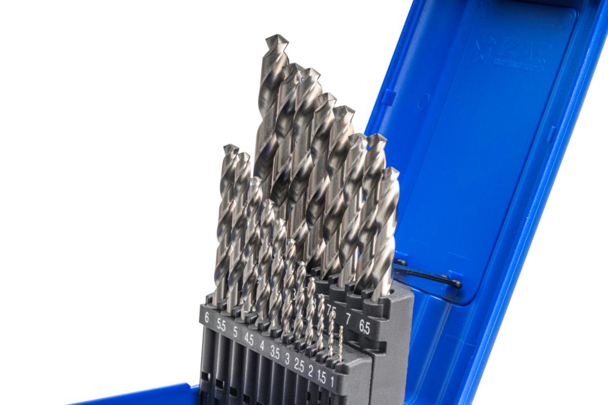 Borsett i kassett med 19 korte spiralbor med sylindrisk skaft. 1,0 - 10,0 x 0,5 mm. Høyhastighets stål. Glanset finish. Tippvinkel 130°. Med krysspunkt fra 2,0 mm, for nøyaktig sentrering og lavere skjærekrefter. For generell boring i standard stål, støpejern og aluminium-magnesium. Egnet for bærbare maskiner. DIN 338 N.