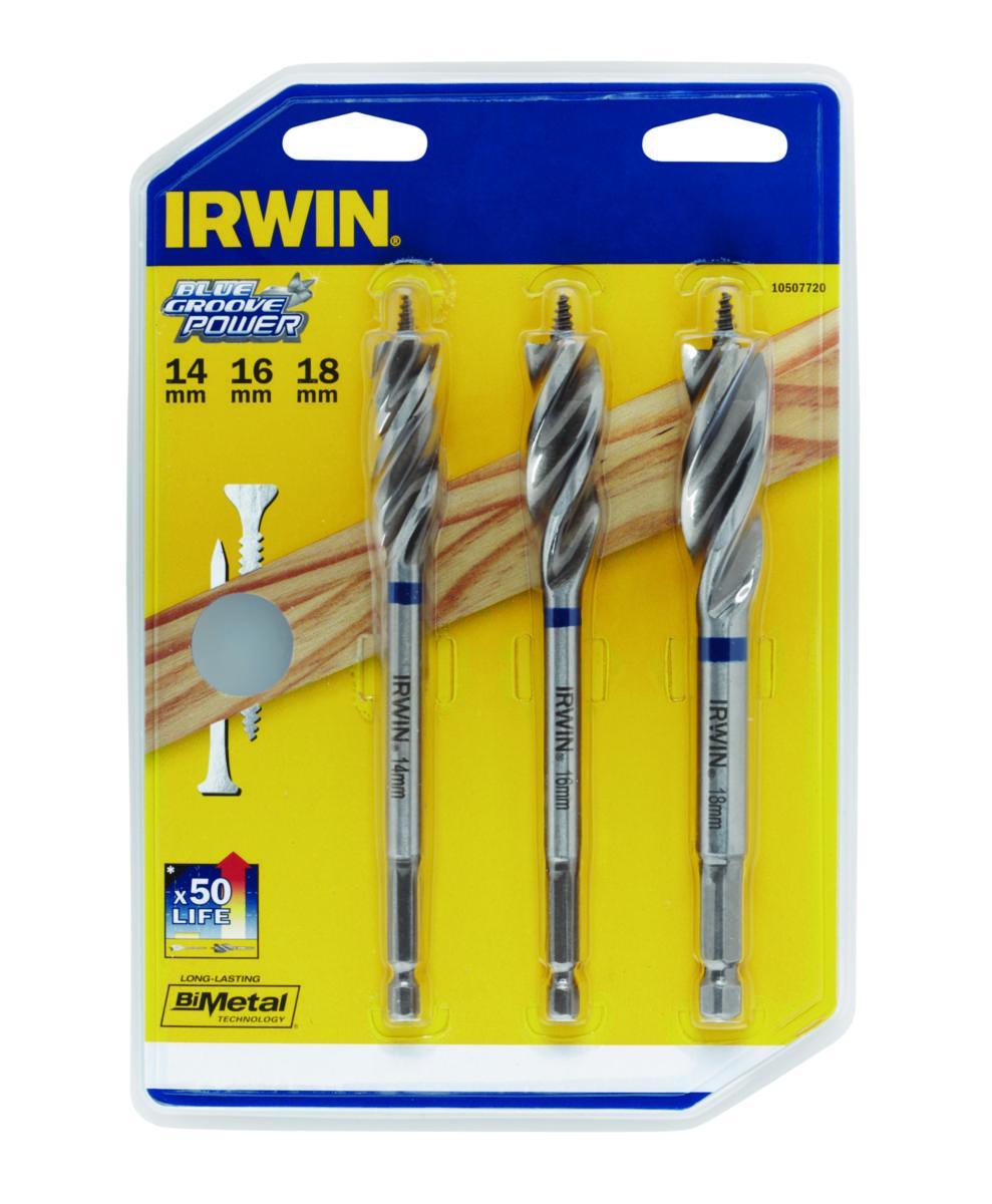 Trebor BLUE GROOVE sett 14,16,18mm 10507713 med Quick change skaft og ekstrem holdbarhet. Bluegroove trebor har ekstrem holdbarhet med HSS-spiss fremstilt med bimetall-skjær. gir lang levetid ved hard bruk, blant annet ved boring i trevirke med spiker. Skruespiss for nøyaktighet og høy borekomfort. Spiralkonstruksjon gir raskere sponavgang og mindre friksjon. Konstruert så den passer mellom tappene i de fleste boremaskiner. QUICK-CHANGE-skaft: 1/4" Quick-Change-skaft på 14-16 mm-bor og 3/8" Quick-Change-skaft på 18-32 mm-bor.