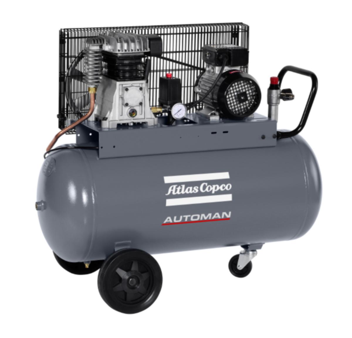 Oljesmurt kompressor med remdrift for lavt turtall og god kjøling. Egner seg for litt tyngre trykkluftoppgaver som spikring, muttertrekker, lettere sliping og litt større trykkluftverktøy. Maks trykk er 10 bar, fri avgitt luftmengde 105 l/min ved 7 bar, luftbeholdervolum 90 liter, regulator og manometer er standard.