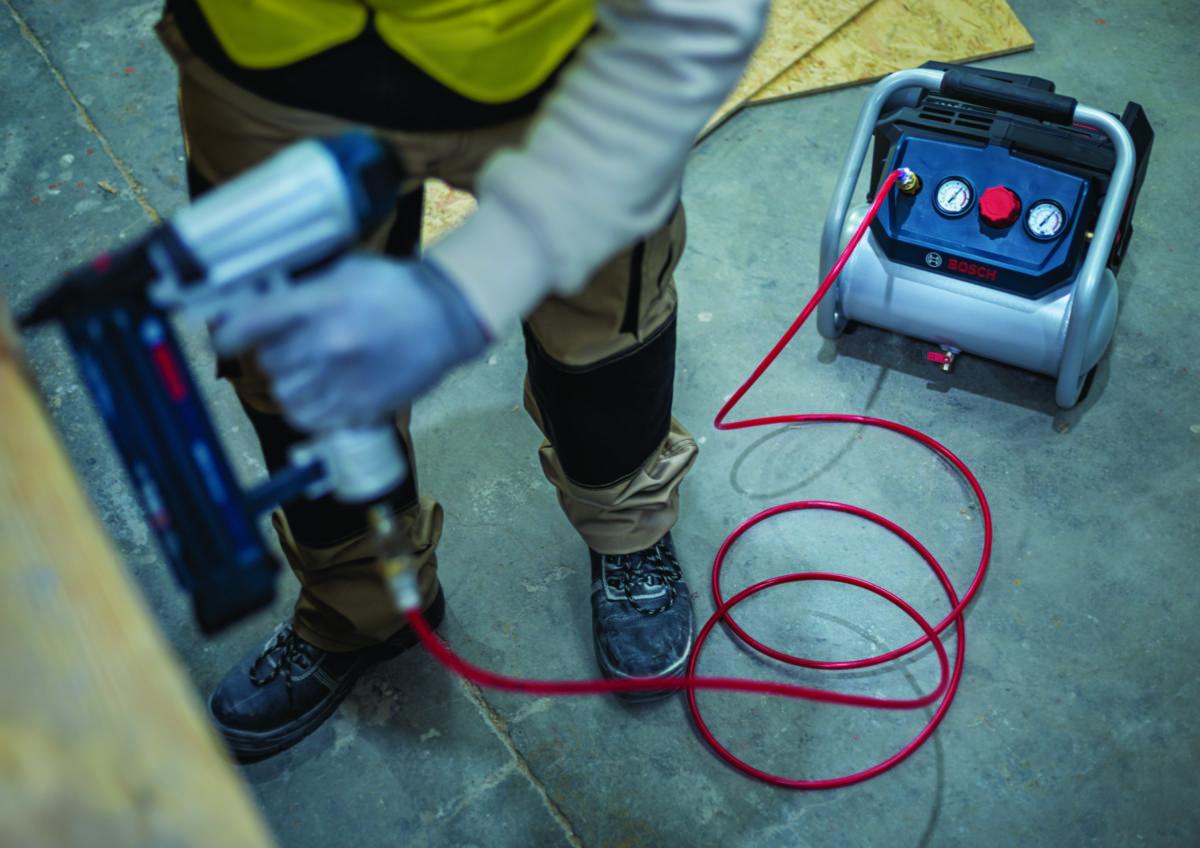Som rørlegger trenger du ofte en mobil kompressor til oppgaver som å vedlikeholde varmeanlegg eller å utføre trykktester på vannsystemer. Med PRO GKO18V-51 batteridrevet luftkompressor får du ytelsen du trenger - 51 l/min luftstrøm ved 6 bar, og et maksimalt trykk på 8 bar. Du kan velge mellom to trykkinnstillinger (4 og 8 bar, med lengre driftstid på 4 bar) og finjustere arbeidstrykket ved å bruke trykkregulatoren. Takket være hurtigkoblingen kan du koble til slanger et par sekunder. Kompressoren er oljefri, og avløpsventilen for kondensvann gjør vedlikeholdet enkelt. I tillegg vil den kompakte størrelsen, akseptable vekten og bærehåndtaket gjøre det enkelt å ta den med seg dit arbeidet krever det.