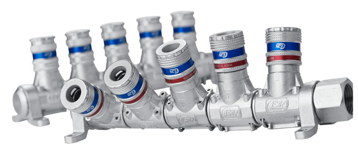 Cejn Multi-Link er en meget fleksibel, vribar trykkluftsforgrening med hurtigkobling serie 320, rekylfri. For fast montering på arbeidsplassen hvor man ønsker flere uttak. Tilgjengelig ferdig montert med 2, 3 og 4 uttak.