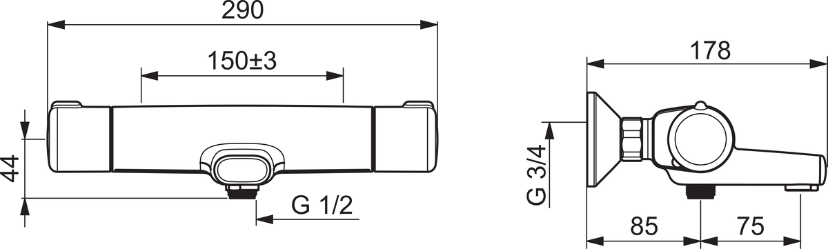 - Nominell diameter, utløp: 1/2" - 3/4"