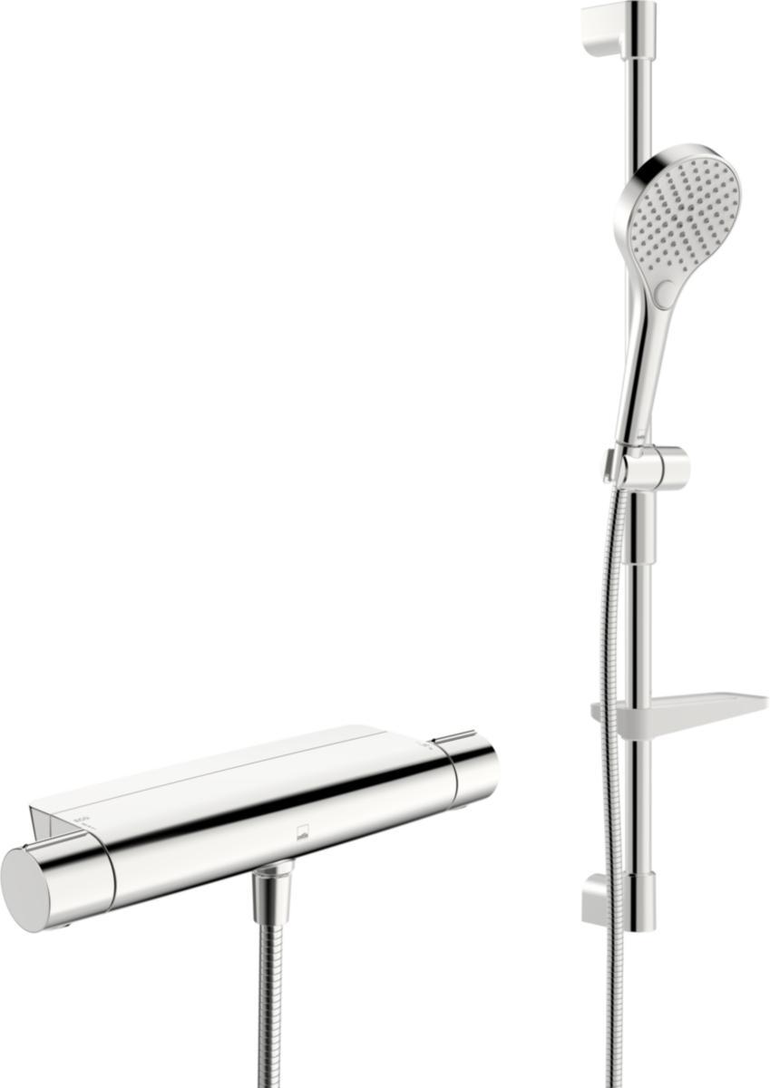 Termostat dusjkran som har en nyutviklet "Magshelf" hylle som dekker tilkobling mot vegg.