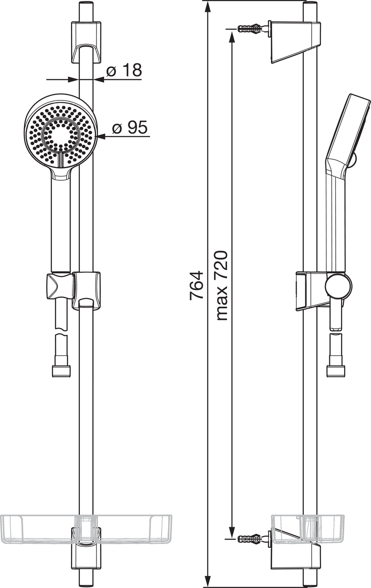 - Med dusjstang og håller: Ja