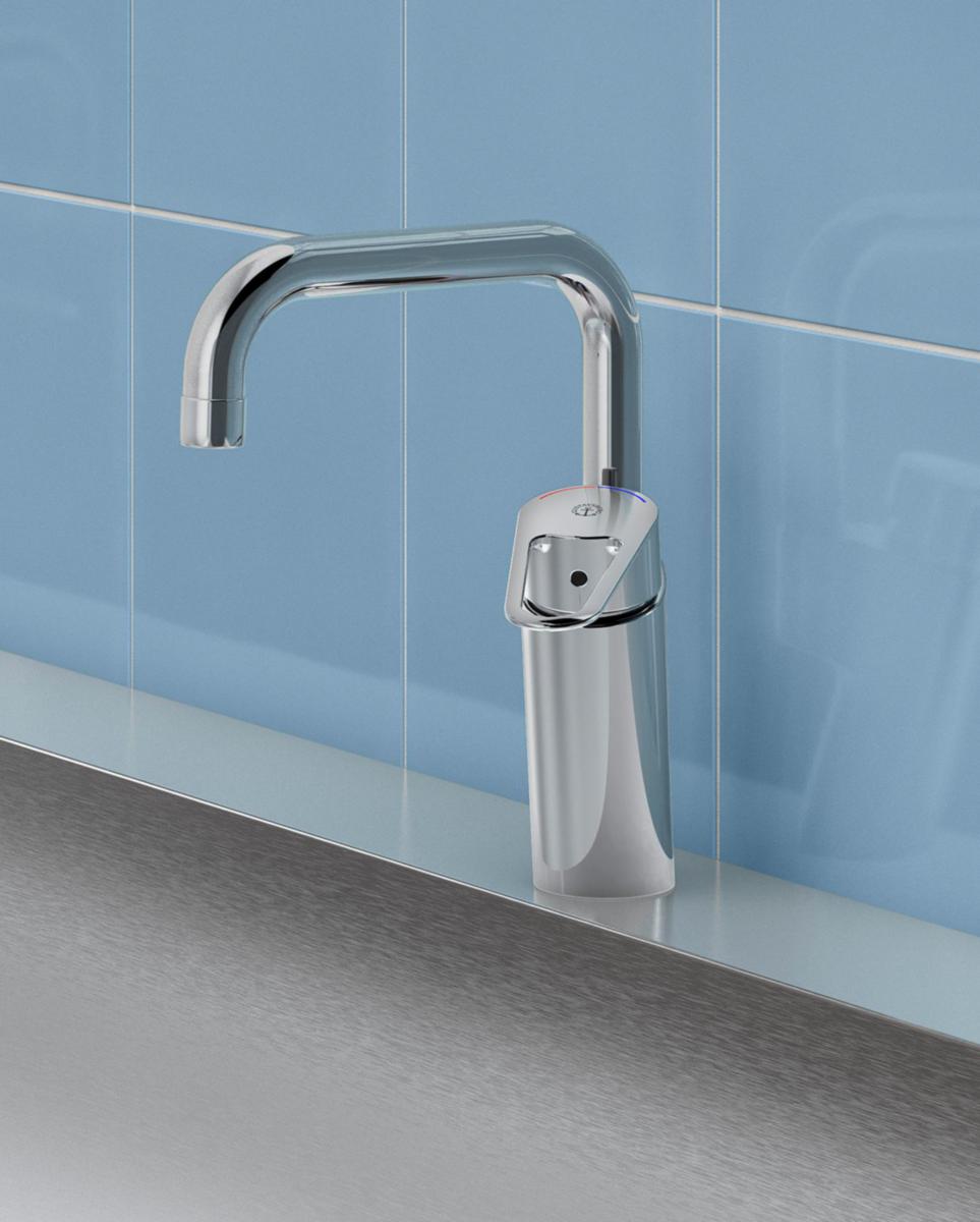 Gustavsberg vaskerennekran med enkelt grep og tydelig fargemarkering for varmt og kaldt. Soft move, teknologi for jevn og presis håndtering. Eco-flow for vann- og energieffektivitet. Eco-stop, justerbar maksimal vannstrøm.