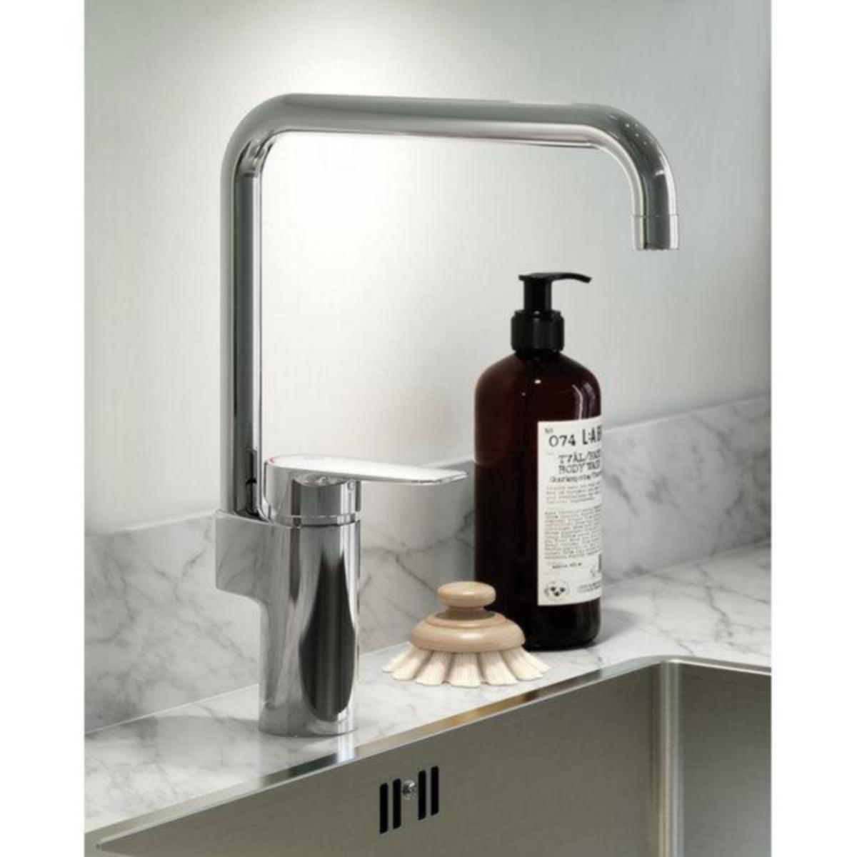 Temperaturbegrensning. Svingbar tut i 110° standard eller 60°. Keramisk tetning mot drypp og for lengre livslengde. Typegodkent fleksibelvanntilkobling for enklere montasje. Tilbakeslagsbeskyttelse etter SS-EN 1717 [AA].