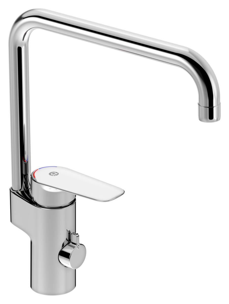 Temperaturbegrensning. Svingbar tut i 110° standard eller 60°. Keramisk tetning mot drypp og for lengre livslengde. Typegodkent fleksibelvanntilkobling for enklere montasje. Tilbakeslagsbeskyttelse etter SS-EN 1717 [AA].