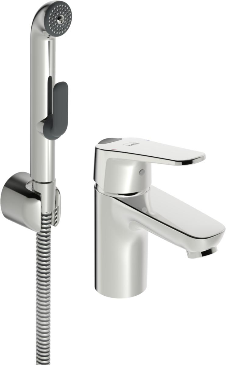Servantkran med Bidetta hånddusj. Dusjslange 1,75 m, og veggfeste til Bidetta medfølger. Hendelen er utstyrt med en økoknapp som kan begrense vannmengden og temperatur. Funksjonen oppheves enkelt ved trykke på knappen. Sikker i bruk og vannbesparende. Høyde: 15,1 cm.