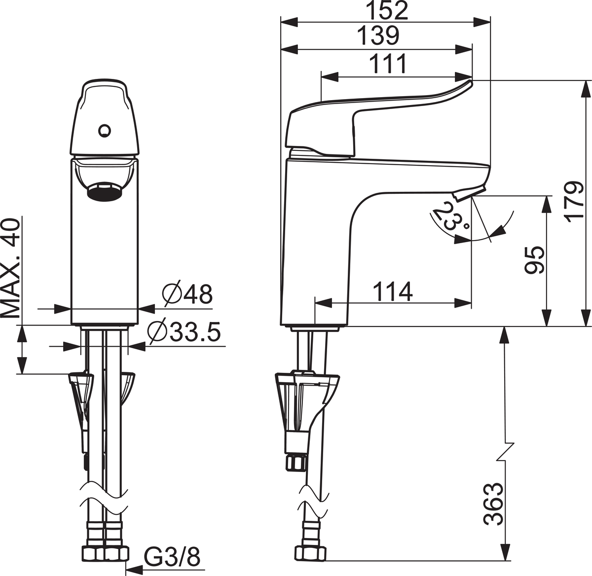 - Byggehøyde, undersiden av kranutløp: 95 mm