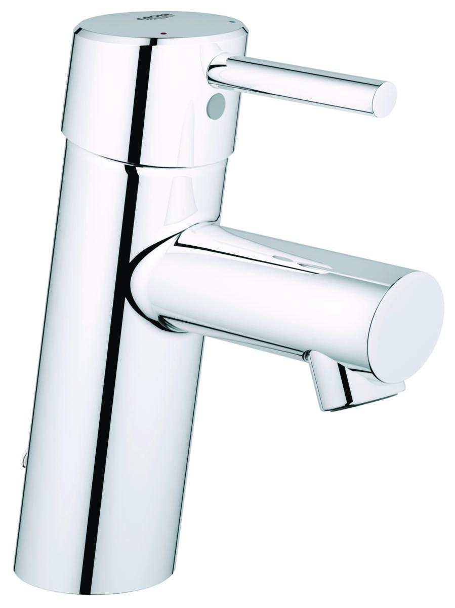 Ettgrepsbatteri til servant med metallhendel, GROHE SilkMove® 28 mm keramisk Patron, GROHE StarLight® kromoverflate, mousseur, senkbart kjede, fleksible tilslutningsslanger, GROHE QuickFixTM hurtiginnstallering og temperaturbegrenser.