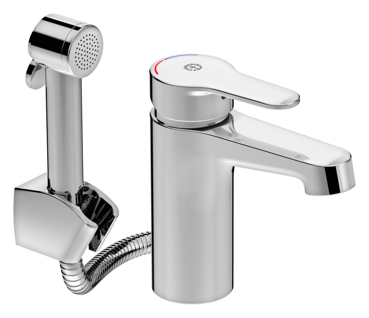 Nordic³ servantkran til baderom med sidedusj og veggholder.