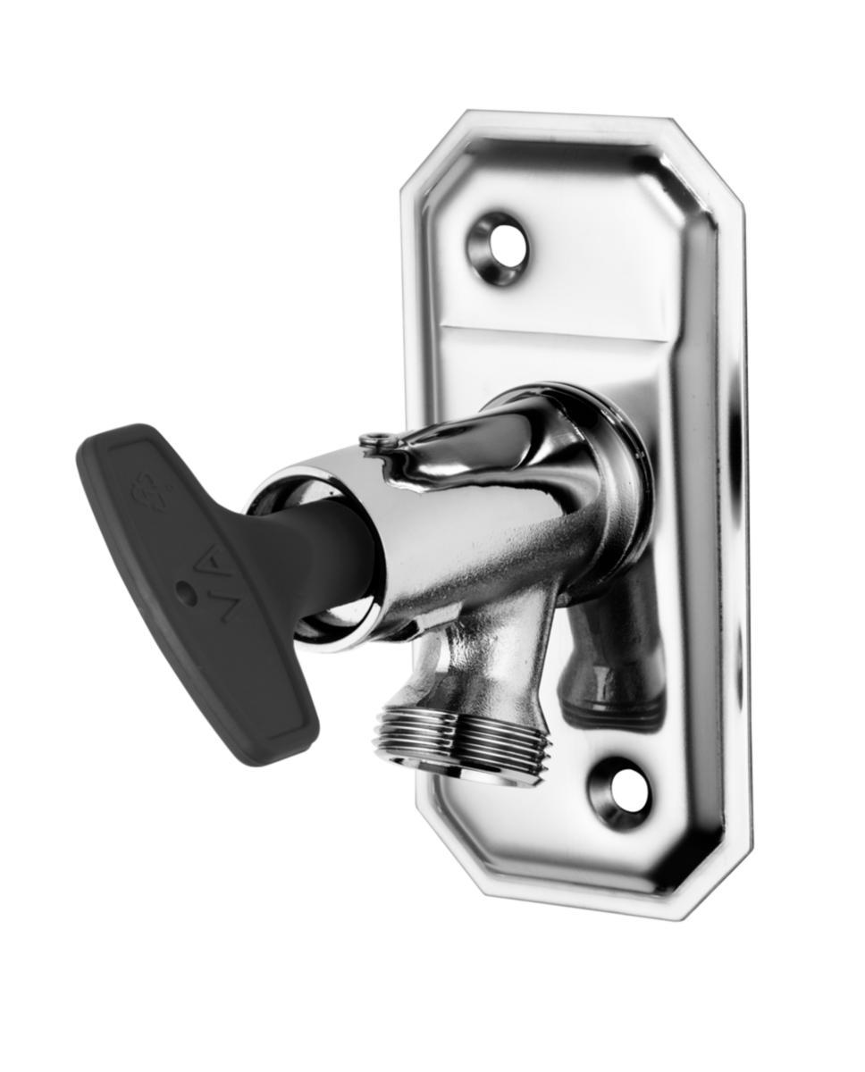 Utendørskran med typegodkjent tilbakeslagsventil for romtype 1. Selvdrenerende og frostsikker også med tilkoplet slange. Utendørskranen er utstyrt med selvdrenerende overstykke. Hver gang vannet stenges av, tappes vannet ut som finnes i røret til utendørskranen, slik at kranen ikke ødelegges av frost selv om tilkoplingsstykke og slange er koplet til. Hver gang kranen stenges, renner det altså ut litt vann på undersiden av overstykket.
