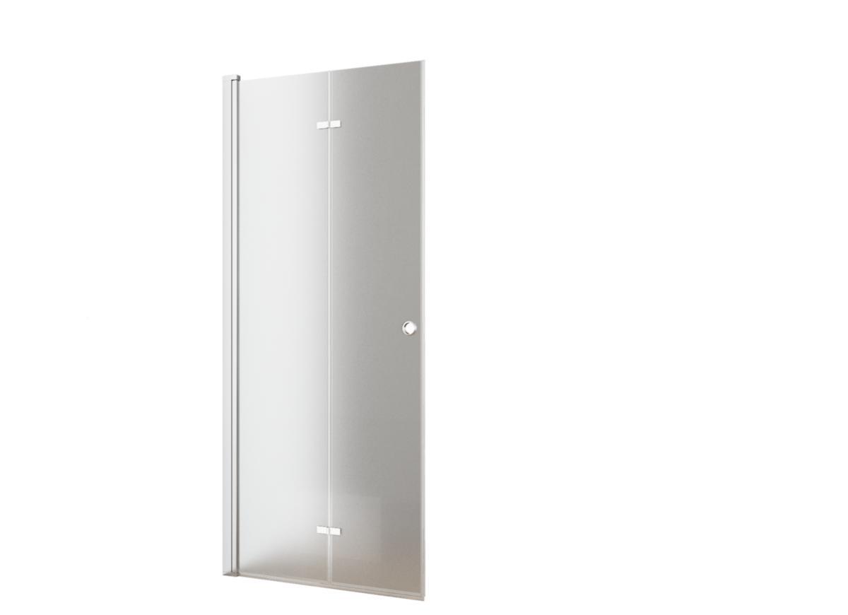 Foldbar dusjdør med forkrommet profil, 6 mm glass med sikkerhetsfilm og easy clean. Alternativt håndttak 1438997. Kan kombineres med rett dør eller fastvegg. Ved montering i nisje må profil 1438985 bestilles i tillegg.