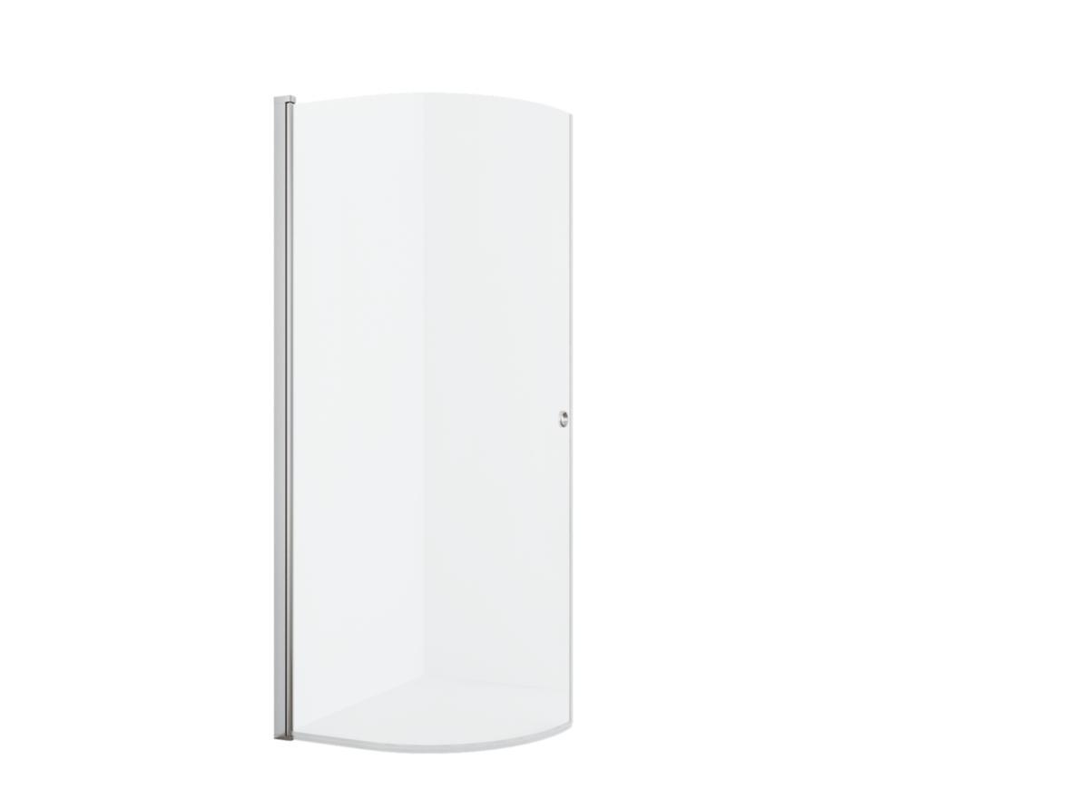 D-formet dusjdør for montering på rett vegg eller hjørne. Forkrommede profiler, 6 mm glass med sikkerhetsfilm og easy clean. NB: bestill 2 stk for komplett dusj.