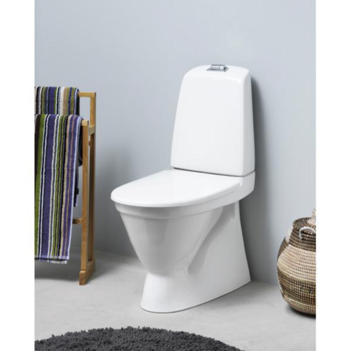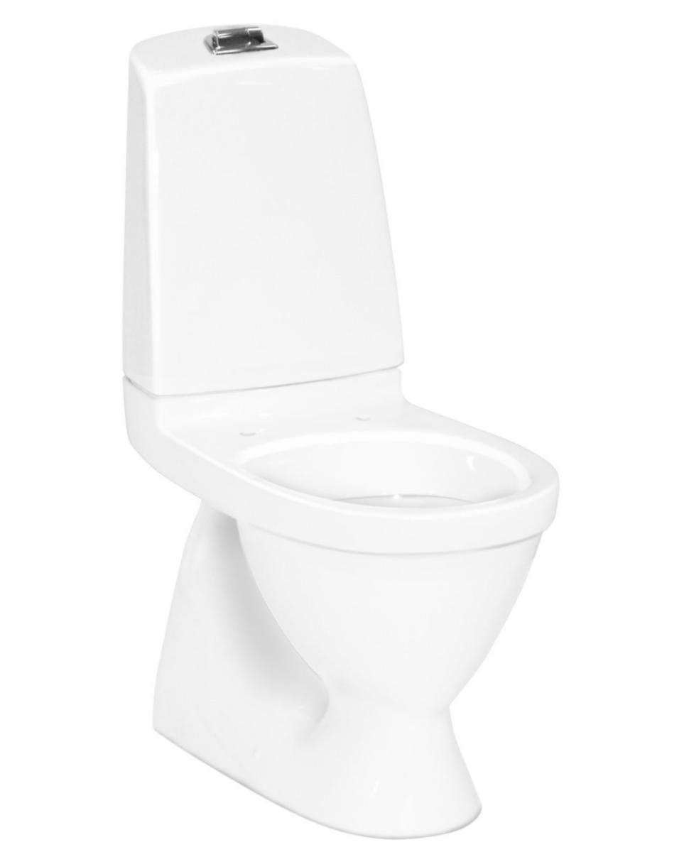 WC Nautic 5500 uten sete. Med heldekkende kondensfri spylesisterne, stille påfylling, opphøyd trykknapp, justerbar vanntilkopling, skjult feste mot gulvet og kan utstyres med armstøtte 3055. Denne serien har kommet med åpen skyllekant, se også nrf nr 6022943, Nautic 1500
