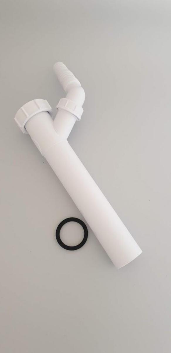 Teleskoprør med slangeanslutning i hvit plast. Tilbehør til avløpsrør.