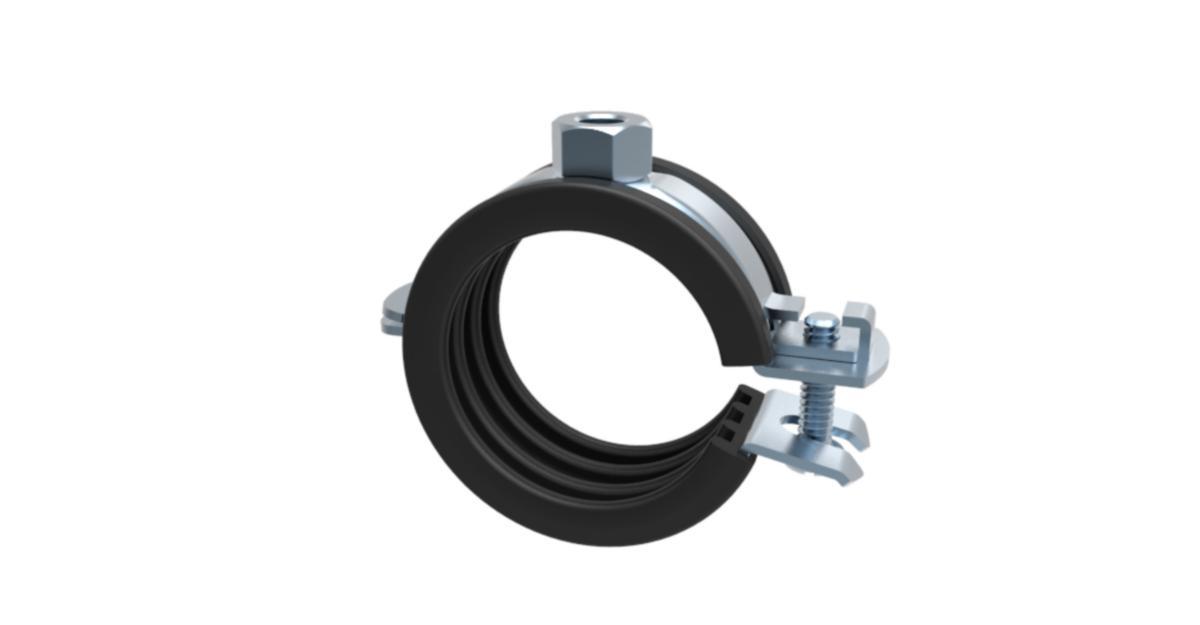 Gummibelagt skrueklemme for komposittrør av plast. Fordeler: Spesialutformet for montering av kompostrør av plast. Spesielt lydabsorberende gummiinnsats for montering av kompostrør. Enkel klikklåsing. Inneholder ingen sterke mykningsmidler som kan trenge gjennom og skade plastrørene. Tekniske data: Materiale: Stål 1.0332 i henhold til DIN EN 10111. Forzinking: Galvanisert, 8-12 m. Lydabsorberende foring: EPDM, fri for klor og silikon. Støyreduksjon: i henhold til DIN 4109. EPDM hardhet: 45 +/- 5 ° Shore-A. Brannegenskaper: Klasse B2 i henhold til DIN 4102.
