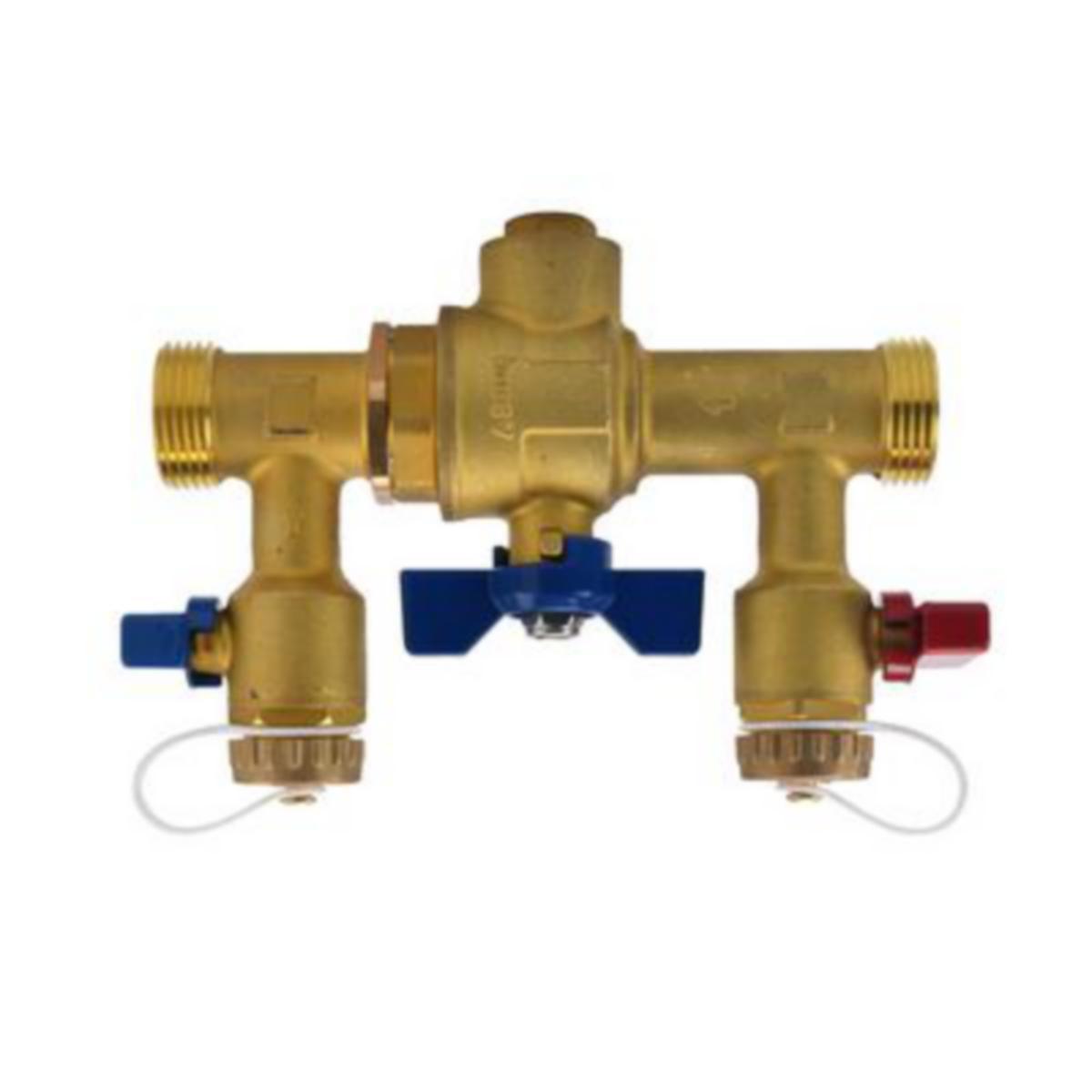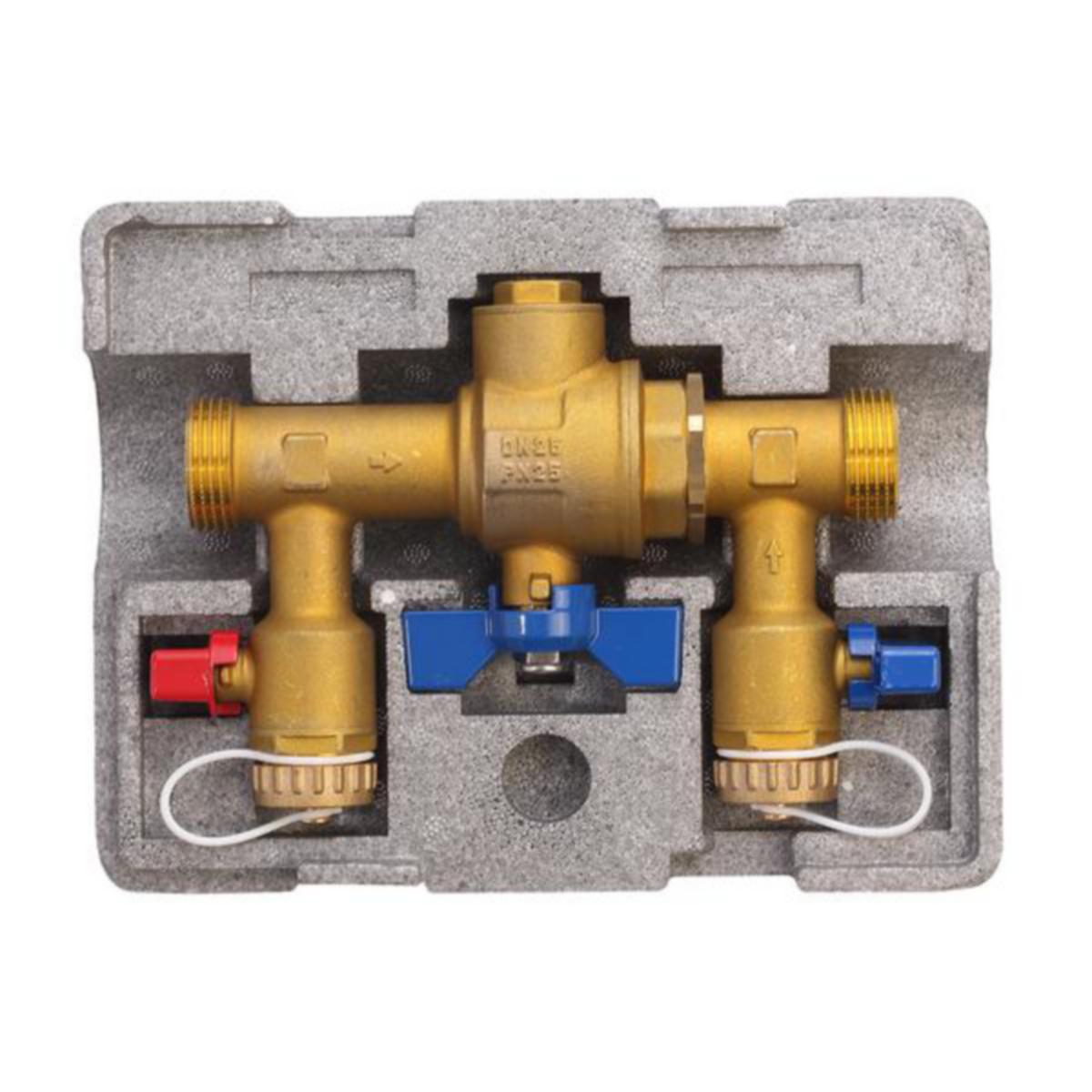 a-collection påfyllingssett i kompakt utførelse for påfylling av brine i kollektorslangen til varmepumper Maks 12 kW. Ventilsettet har smussfilter som fanger opp eventuelle partikler. Smussfilteret må rengjøres når installasjonen er fullført, deretter regelmessig en gang i året og ved etterfylling av systemet. Vær oppmerksom på pilene på ventilhuset som indikerer strømningsretningen. Ventilsettet leveres med isolasjonsboks som beskytter mot kondens og isdannelse. Tilkobling hhv 1"x 3/4".