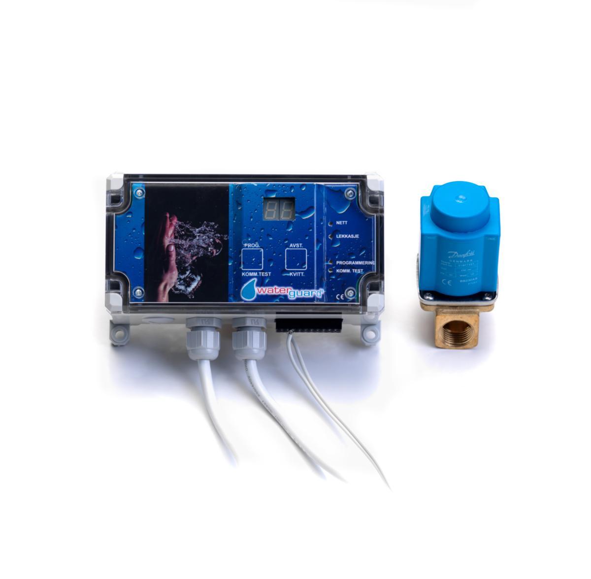 Waterguard 7 kanal er et trådbasert vannlekkasjesystem som er tilpasset større og mer kompliserte installasjoner hvor trådløse systemer er uegnet, som f. eks. leiligheter med rørsjakter. Sentralenheten har 7 sensorutganger og leveres med innebygget uttak for overføring til alarmanlegg. Består av: Sentralenhet, Danfoss magnetventil og 1 stk. sensorledning.