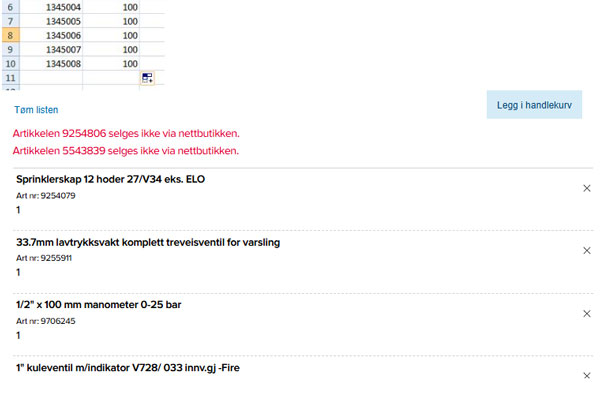 Vi har gjort det enkelt for deg å bestille sprinkler-pakker! Se hvordan du går frem, slik at du har alt du trenger ved installasjon! Bestill enkelt ved å kopiere produktlinjene direkte fra Excel og inn i nettbutikkens handlekurv med få klikk!
